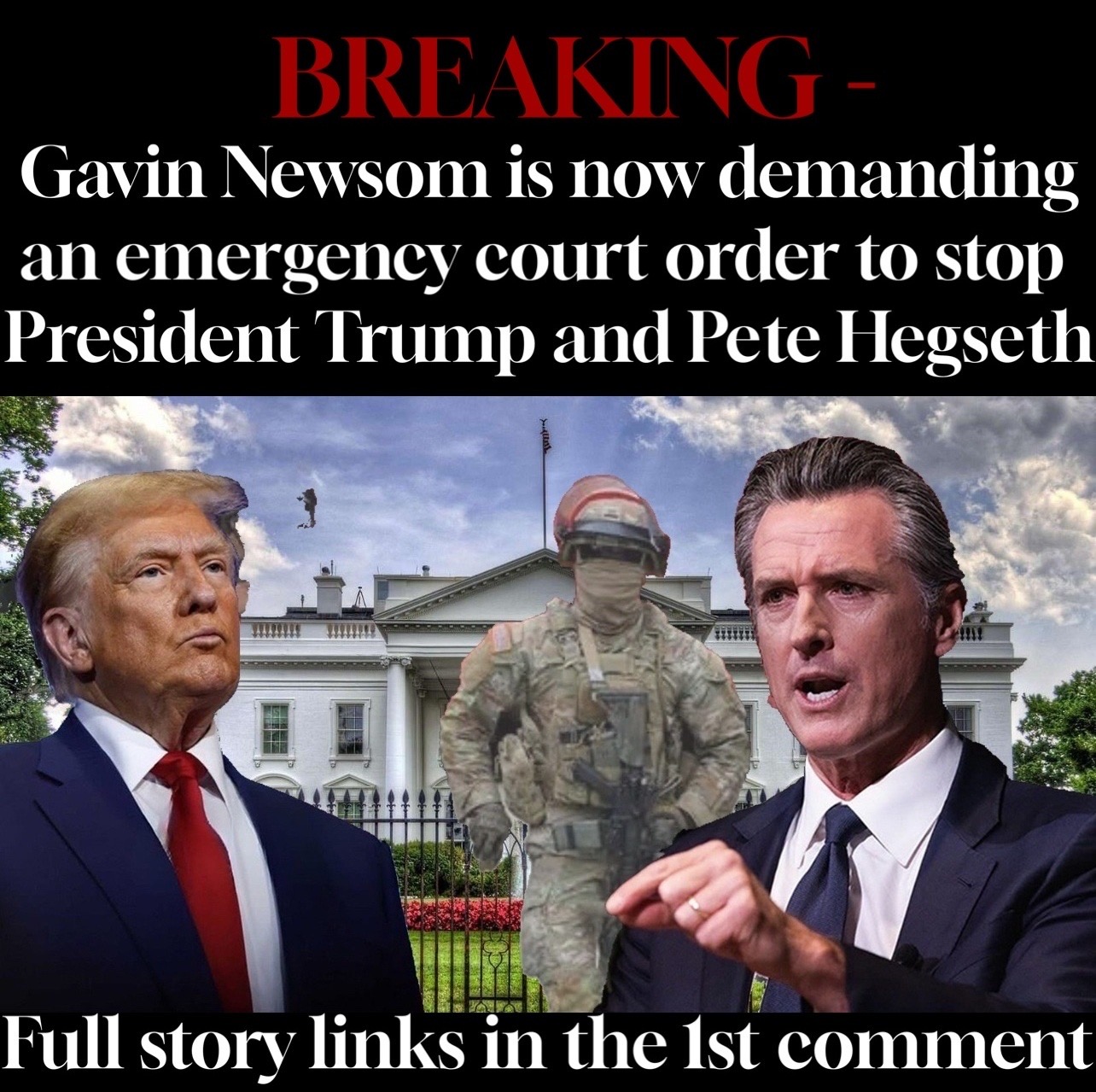 BREAKING – Gavin Newsom is now demanding an emergency court order within two hours to stop President Trump and Pete Hegseth from using the military in Los Angeles,