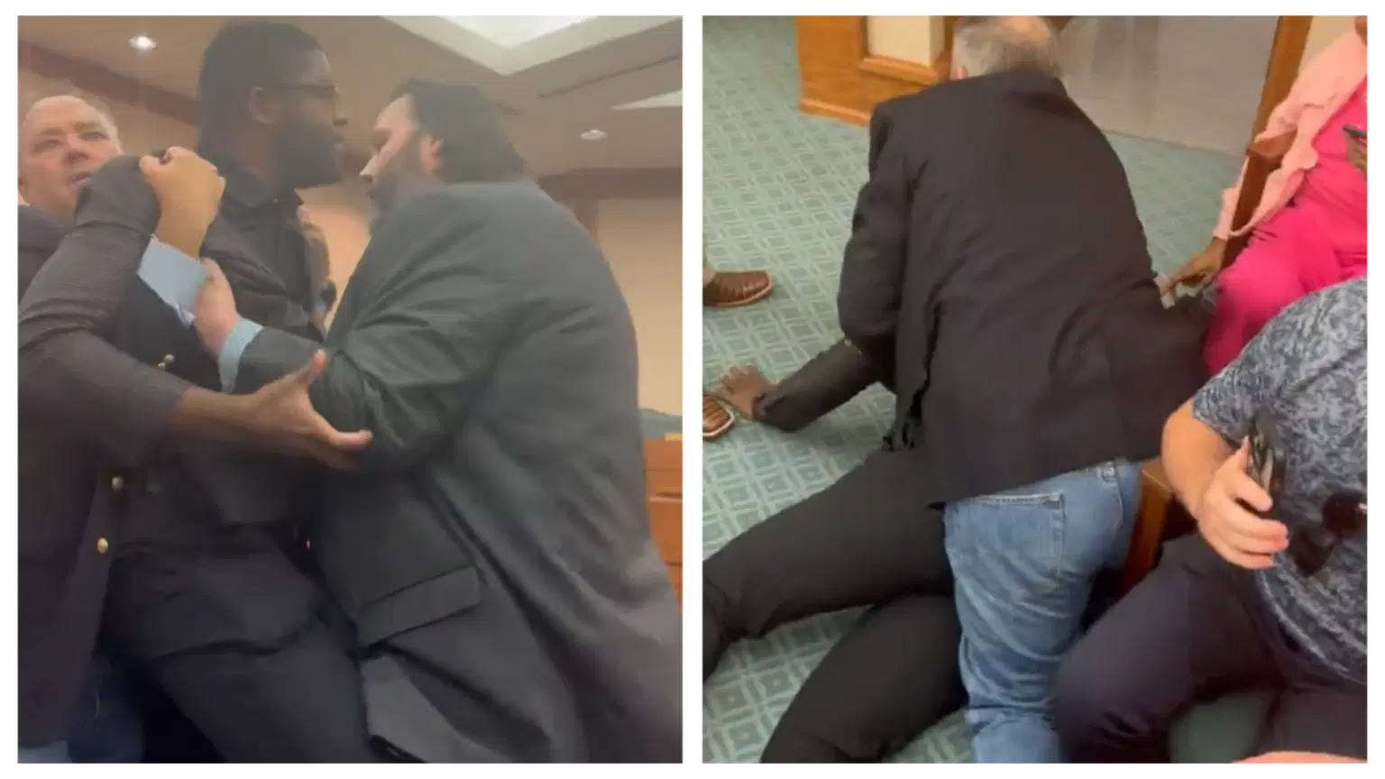 “The sergeants are directed to remove the gentleman from the room,” said Chairman Cody Vasut, as Martin struggled with security and shouted, “History will not remember you for what you have done!”