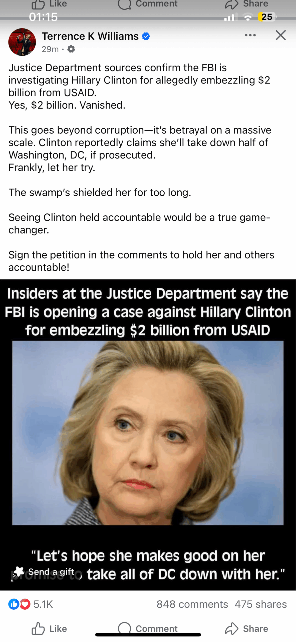 Yes, $2 billion. Vanished.This goes beyond corruption—it’s betrayal on a massive scale. Clinton reportedly claims she’ll take down half of Washington, DC, if prosecuted.