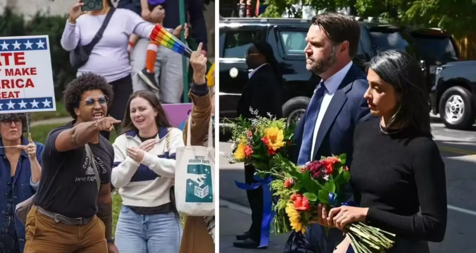 Outside the church, demonstrators gathered across the street, holding signs that read “Protect kids not guns” and waving a rainbow Pride flag that included transgender colors. Chants of “you’re a coward,” “do better,” and “protect our kids” echoed as the Vice President arrived. Conservative commentator Dustin Grage criticized the protest on social media, calling it “tone-deaf” given the somber occasion and the nature of Vance’s visit.