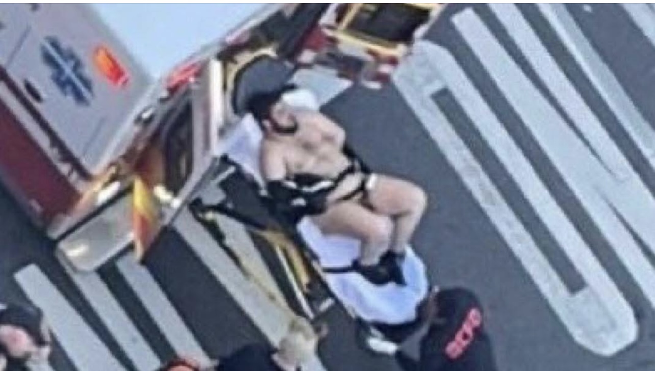 An alleged photo circulating online appears to show the suspected shooter being loaded into an ambulance after the violent attack that left at least two D.C. National Guard members critically wounded. The image shows the individual surrounded by first responders as authorities moved swiftly to secure the scene.